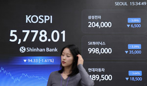 "휴전 맞아?" 코스피 1% 약세…삼성전자·SK하이닉스 2%대 하락[장중시황...
